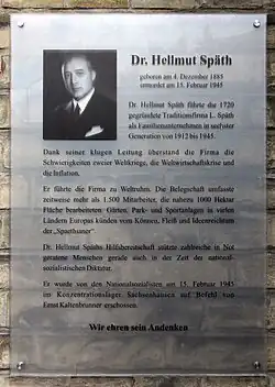 In 2009, a Stolperstein (small, cobble stone-sized memorial plaque) was installed at his old school, Landesschule Pforta, to commemorate Späth as a victim of the Nazi regime.[2]