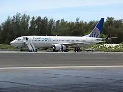 Continental Micronesia served Midway with Boeing 727-100 jetliners during the early 1970s although the airport was only used as an "operational stop" for refueling on this airline's westbound service from Honolulu to Guam.[6] The routing of these 727 flights was Honolulu - Midway Island - Kwajalein - Majuro - Ponape - Truk - Guam.[7][8]