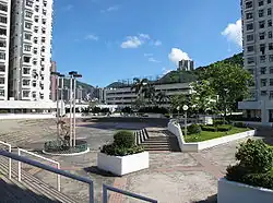 There are a total of 48 residential blocks,[7] numbered 1 through 50 (numbers 14 and 44 are omitted due to tetraphobia in Cantonese). The first phase of the development featured 20-storied complexes, while the second phase featured 21-storied complexes. The comparatively low height of the towers was due to their location in the flight path of most planes using the former Hong Kong International Airport at Kai Tak.