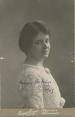 From Autumn 1907, Astrup joined Ludovica Levy's National Tour as an actress, secretary and business manager. During the tour, she portrayed Nora in the Henrik Ibsen play A Doll's House. After a performance of it in Fredrikshald, it was said she "was made for the role, both in appearance and in nature".[3] When the tour's season ended in 1910, Astrup performed in Tromsø in the musical Dramatisk og deklamatorisk musikalsk Soiré alongside Levy and pianist Gyda Foss. In continuation of this, Levy and Astrup performed Erasmus Montanus and Det lykkelige Skibbrudd, sharing the role between them.[4]