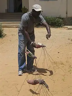 Amongst the ten contemporary artists of Senegal at the Dapper Museum in Paris in 2006, focusing on the creativity of a generation of Senegalese artists, Sagna set up an entire display of Mosquitoes and insect screens. The insects were made with enormous paws from galvanized steel wire, bottles of soda and celluloid for the wings.