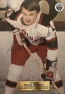 Karl Torsten Henric "Tosse" Hedlund (born 7 April 1945)[1] is a retired Swedish professional ice hockey player. He played for Skellefteå AIK and Västra Frölunda IF. He also competed in the 1968 Winter Olympics, where he scored three goals and two assists.[1][2]