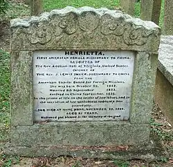 - ^ "First American Woman Missionary to China J-89 | Marker History".