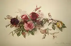 Mankiewicz made decorative panneaus, mostly with flowers and landscapes. Her works - often called needle paintings - were often a combination of different techniques - embroidery, painting and sewing on silk. Her works were shown in numerous German cities. At the Paris World's Fair in 1889, her works were on display in the Austrian section to acclaim. Subsequently, she was honored with a medal by the jury of the World's Fair and, at the suggestion of the painters Ernest Meissonier, Léon Bonnat and Émile Auguste Carolus-Duran, received the distinction of Officier de l'Academie.[8] She received further medals in Prague and in the Netherlands. In 1894 she successfully exhibited her so-called giant paintings in Berlin. She also collected art, and donated the painting Houses in Argenteuil by Claude Monet to the National Gallery in 1898.[9]