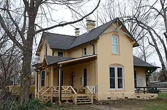 The Henry-Thompson House is a historic house at 302 SE Second Street in Bentonville, Arkansas. It is a two-story brick building, with Italianate styling that includes trusswork in the front-facing gable, a scrollwork balustrade on the main porch, and scrolled brackets on a hood over a secondary entrance. Built in 1890, this is a good representative of late Italianate style brick homes that were built in significant numbers in Bentonville between 1870 and 1895.[2]