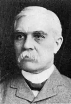 Henry Bond Fargo, a fourth cousin once removed of J. C. and William Fargo, was born in 1843 in Warsaw, New York. The son of blacksmith William N. Fargo, Henry Fargo moved with his family to Delavan, Wisconsin when he was a child. By 1860, the family had removed to Fond du Lac. Fargo began his first business enterprises in his new home, becoming involved with real estate. He opened a real estate agency in Redwood Falls, Minnesota. His success in his endeavors brought him to the attention of E. A. Cummings & Co., the largest real estate business in Chicago, Illinois, who hired Fargo as their principal salesman.[1] Henry moved to Geneva, Illinois in 1887 into the former home of Isaac Wilson.[2] Fargo became a prominent politician and businessman in Geneva. Fargo founded the First National Bank of Geneva and was its first president.[3] He was able to convince the Appleton Manufacturing Company of Appleton, Wisconsin to relocate to Geneva in the 1890s. Fargo constructed a racetrack and theater in Geneva. Fargo was elected Mayor of Geneva in 1903 and served for a year. In 1907, he ran for mayor again and served three years.[1] In 1912, Fargo, as a candidate of the Progressive Party, was elected to the Illinois House of Representatives as one of three members from the 14th district. The 14th district consisted of Kane and Kendall counties.[4][5] In the 1914, Fargo finished third in the Progressive Party primary behind nominees Charles Doetschman and R. Waite Joslyn. Doetschman and Joslyn in turn would finish fourth and fifth respectively for three seats.[6]