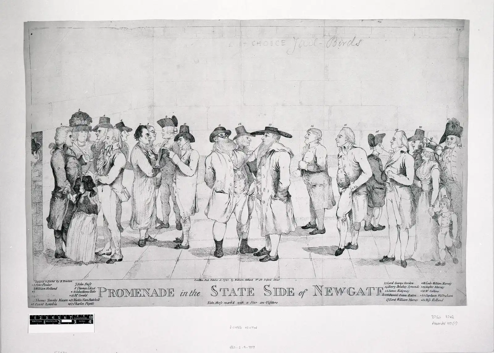 - ^ Wikimedia Commons Promenade in the State Side of Newgate (BM 1867,0309.777 1).jpg and https://collections.library.yale.edu/catalog/10957385.