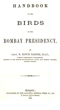 - Barnes, H. Edwin (1885). Handbook to the Birds of the Bombay Presidency.