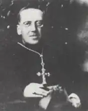 Born in Mold, Flintshire, Wales on 27 March 1871, he was ordained a priest of the Order of Saint Benedict on 19 October 1902.[1] He was appointed the Bishop of the Diocese of Gibraltar by Pope Pius X on 10 November 1910.[1] His consecration to the Episcopate took place on 21 December 1910; the principal consecrator was the Right Reverend Peter Amigo, Bishop of Southwark, with the Right Reverend Frederick Keating, Bishop of Northampton (later Archbishop of Liverpool) and the Right Reverend Francis Mostyn, Bishop of Menevia (later Archbishop of Cardiff), serving as co-consecrators.[1]