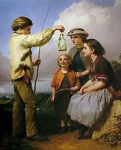 From the 1850s, he became well known as a genre painter.[1] In this category belong works such as "Little Red Riding Hood" (1863), "Early sorrow" (1869), "Little Bo Peep" (1873 and 1881), "Much ado about nothing" (1873) and many others.