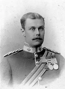 During the Second Boer War he was part of the large force sent out to relieve the Siege of Ladysmith, and took part in the Battle of Spion Kop (January 1900) and the Battle of the Tugela Heights (February 1900), where he was wounded on the day before the actual relief of the city.[4] He was awarded the Queen's South Africa Medal with 2 clasps and was twice mentioned in dispatches. He later achieved the rank of Staff Captain at Southern Command. He was promoted to captain on 30 May 1900.