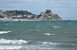 Henry Ughtred was born around 1533[2] at the castle of Mont Orgueil, also known as Gorey Castle, on the island of Jersey.[7][8] He was the son of Sir Anthony Ughtred, governor of Jersey and Elizabeth Seymour, daughter to Sir John Seymour of Wolf Hall, Wiltshire and Margery, daughter to Sir Henry Wentworth.[7] Sir Anthony Ughtred died in Jersey on 6 October 1534 and was buried in the chapel of St George, in the castle of Mont Orgueil.[7] After her husband's death, his mother returned to Kexby, Yorkshire. The manor of Kexby had been granted for life to Sir Anthony Ughtred and his wife by Henry VIII in 1531[9] and it was here that Henry's sister Margery was probably born. Margery Ughtred later married William Hungate of Burnby, Yorkshire and had two sons, William and Leonard.[10]