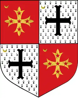 ![]() Arms of Ughtred, Kexby: Gules, on a cross patonce Or, five mullets of the first.[1] | |