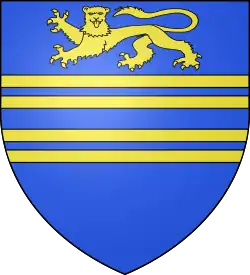 Coat of arms of Henry de Tregoz, Lord of Goring, Azure, two bars gemelles, and in chief, a lion passant guardamt Or.