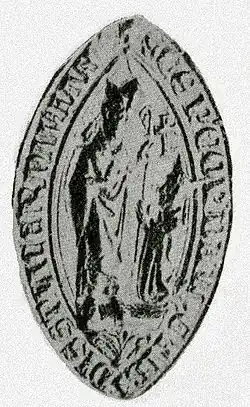 This date is not however certain, as Henry's name occurs merely as Abbot, not even "bishop-elect", in a Dunfermline Abbey document dated to October 1254.[3] He was elected with the support of the Comyn faction who at that time dominated the minority of the young King Alexander III of Scotland, an election that John I de Balliol initially opposed, with Balliol citing the "ancient liberty of his subjects", i.e. the rights of the Lord of Galloway and the Galwegians.[4] This objection is at first sight confusing, since John de Balliol himself was a Comyn ally and part of the Comyn regime.[3] Richard Oram argues that Balliol's objection was more concerned with his own rights of patronage, but at any rate Balliol's objections came to nothing.[5]
