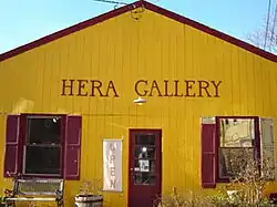 Hera Gallery was created in 1974, the year that the alternative gallery movement burst beyond major cities and into more remote locations, like Wakefield, Rhode Island.[1] It was conceived from a consciousness-raising group consisting mostly of artists, and often associated with the nearby University of Rhode Island, that started meeting in 1969.[2] One of the common topics to discuss were the difficulties of balancing the domestic responsibilities of being wife and mother with a professional artistic career.[3] The women discussed the difficulty in having their work represented in Manhattan galleries, where apparent sexism from gallery owners caused their work to be disregarded.[2] Hera Gallery was thus created in order to foster a professional community of women artists, in the vein of other recently established women-run artist cooperatives,[3] such as New York City's A.I.R. Gallery. At the time, a Providence Journal writer commented that "...a women's art center named after a bitchy Greek goddess and housed in a barn that used to be a laundry is New England's only art gallery completely owned and controlled by women..."[1]
