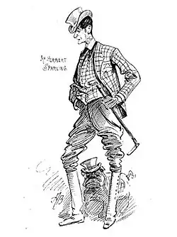 Sparling appeared as Dudley Harcourt in My Sweetheart (1891) at the Vaudeville Theatre;[2] Luigi Di Volpa in F. C. Burnand's Private Enquiry (1891) at the Strand Theatre;[3] Lyngstrand in Ibsen's The Lady from the Sea (1891) at Terry's Theatre;[4][5] Josiah Higgins in Morocco Bound (1893);[6] Sir Wormwood Scrubs in Howard Talbot's comic opera Wapping Old Stairs (1894);[7][8] as Lord Lavender in The Lady Slavey (1894);[9][10] Detective in A Melodrama at the Trafalgar Theatre (1894);[11] in an American tour of A Little Ray of Sunshine (1899) which played at Chickering Hall in Boston and Wallack's Theatre in New York among other venues;[12] William Piddock in 22A, Curzon Street at the Garrick Theatre (1898):[13] Pomponius in A Greek Slave at the Herald Square Theatre in New York (1899); in Little Nell and the Marchioness at the Herald Square Theatre (1900); Lord Framlingham in Lady Madcap at the Prince of Wales Theatre (1904);[14][15] Mr Tobin in Noah's Ark at the Waldorf Theatre (1906); and the Duke of Tysmoke in Nelly Neil at the Aldwych Theatre (1907).[16]
