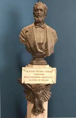Count Hercules Turati or Ercole Turati (1829 –1881, Milano) was a wealthy Milanese banker and naturalist. He purchased natural history specimens and built up a very large private collection of more than 20,000 bird specimens, mostly mounted, which include the now extinct Great Auk. The Museo Civico di Storia Naturale di Milano was constructed to house the specimens that his heirs donated to the city after his death. A large number of specimens were however destroyed during an air raid in 1943.