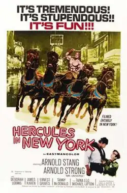 Hercules in New York is a 1970 American fantasy action comedy film directed by Arthur Allan Seidelman and written by Aubrey Wisberg. It was released on home video under the title "Hercules Goes Bananas". It stars Arnold Schwarzenegger in his acting debut as the eponymous divine hero, who engages in escapades after traveling to New York City. Produced independently by Wisberg on a budget of $300,000 (equivalent to $1.82 million in 2023),[3] the film was shot entirely on location.