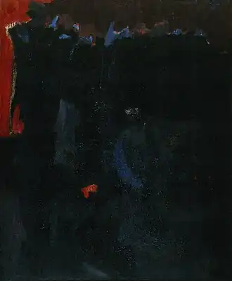 Some of his paintings on canvas contained areas of heavily layered pigment adjacent to thinly painted ones.[11] They also sometimes contained areas of impasto and occasionally foreign matter such as coffee grounds.[1][45][52]