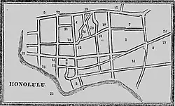 He returned to the United States in 1844,[7] and journeyed to St. Louis, Missouri, to join a group traveling to Oregon Territory.[29] In May 1845, he sailed from Oregon to Hawaii on the brig Chenamus. Within several months, the Hawaiian government hired him to survey the streets of Honolulu.[30]