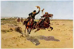 Herman Wendelborg Hansen (1854-1924) was a 19th-century artist, well known for his Western-themed paintings featuring horses, cowboys, and the frontier.