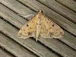 - ^ a b c d e Kim, Sung-Soo; Bae, Yang-Seop; Byun, Bong-Kyu (2012). "Discovery of two unrecorded species of the family Crambidae (Lepidoptera) from Korea". Korean Journal of Applied Entomology. 51 (4): 439–442. doi:10.5656/KSAE.2012.10.0.056.