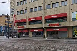Hesburger (colloquially known in Finland as Hese and in Estonia as Hess) is a fast food chain based in Turku, Finland.[2][3] In 2008 it was the largest hamburger restaurant chain in Finland,[2] Estonia, Latvia and Lithuania, with a market share larger than that of U.S.-based rival McDonald's. It further operates in Bulgaria, Germany, Poland, Romania, and Ukraine. Hesburger primarily purveys fast foods such as hamburgers, fried potatoes, salads and desserts. The company name is derived from the nickname of the founder, Heikki "Hese" Salmela.[4]