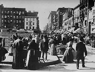 Hester Street is featured in Abraham Cahan's 1896 novel Yekl: A Tale of the New York Ghetto, and is the title of the 1974 period film Hester Street, adapted from Cahan's novel.[11][12]