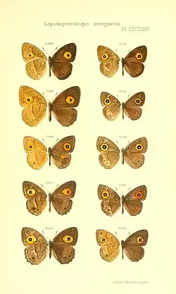 - ^ Afrotropical Butterflies: File E – Nymphalidae - Subtribe Mycalesina