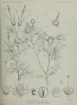 - ^ "Hibiscus stenanthus Balf.f." Plants of the World Online. The Trustees of the Royal Botanic Gardens, Kew. n.d. Retrieved August 1, 2020.