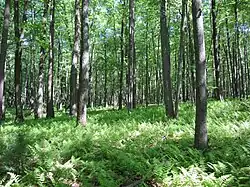 Hickory Creek Wilderness is primarily characterized by black cherry and beech, with scattered hemlock and clumps of oak, maple and birch, with an understory of abundant flowers, ferns, shrubs, and mosses. Large white pine can be found scattered in open areas.[1][2] American black bear, white-tailed deer, wild turkey, barred owl, and pileated woodpecker are common in the Wilderness. Small native brook trout can be found in both East Hickory and Middle Hickory Creeks.[2]