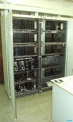 Hicom 300 is a telephone exchange system from Siemens.[1] It was originally sold in the US as the ROLM 9751-9006i, and is used by big companies such as UBS, Swisscom, Nestlé and Tamco. The Hicom system has been surpassed by the HiPath 4000 system (since 2013 Unify OpenScape 4000) (which is in turn being surpassed by Siemens's VoIP offerings). The Hicom/HiPath series are a modular set of phone systems which come in several shapes and sizes, from the smallest wall-mountable units which support a few dozen clients to the largest modular block units which take multiple cards for digital (ISDN), POTS (analog), and VoIP cards. These phones are typically administered via a LAN card with Siemens's phone management software ('Manager E' also known as the 'ASS_150e.exe'), and are extremely powerful. Customer passwords are obscured in the KDS files but may be hacked using simple programs developed by third-party personnel. The HiPath 3000 system can be integrated with a range of Siemens applications which were actually written by other companies and then rebranded.