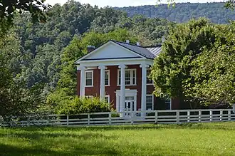 Hidden Valley, also known as Warwickton, is a historic home located near Bacova, Bath County, Virginia. It was built in 1858, and is a two-story, five-bay, brick structure with a hipped roof in a Greek Revival / Late Victorian style. It has a rear ell. The front facade features a pedimented tetra-style portico with Ionic order columns, placed over the central three bays of the five-bay facade. The entrance is styled upon a design on Plate 28 in Asher Benjamin's stylebook, The Practical Carpenter (1835).[3]