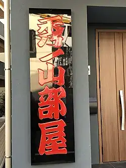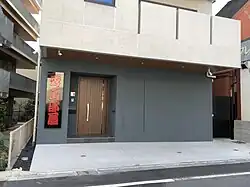 Located in Higashimukōjima, Sumida, the new stable had a groundbreaking ceremony in November 2023 and was completed in November 2024.[8] Its official inauguration took place in April 2025, in the presence of the two directors of the Nishonoseki ichimon at the time (Takadagawa and Sadogatake).[9] The building has five floors, the first of which serves as the training ground and the second as the dining and bathroom facilities. The third as the dormitories and private rooms for the sekitori, and the fourth as a gym and office.[7] The fifth floor houses the private apartments of the master and his family.[7][9] The stable's training ring was designed to be seen from the adjacent nursing home.[7][10] Its sign is made of cypress and was created using a wajima-nuri lacquer method with a bright red color to ward off evil spirits.[8] The sign was originally assembled in Wajima, Ishikawa and was saved in the craftsman's workshop after the 2024 Noto earthquake.[7]