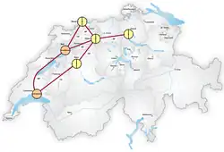 | Mattstetten–Rothrist new line | 200 km/h (125 mph) | 200 km/h (125 mph) | 45 km | 1996 | 2004 |