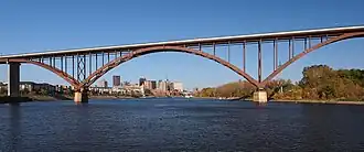 The Smith Avenue High Bridge or the High Bridge is an inverted arch bridge that carries Minnesota State Highway 149 and Smith Avenue over the Mississippi River in Saint Paul, Minnesota, United States. It was built and opened in 1987 at a cost of $20 million. The bridge carries two lanes of street traffic over the river and is the highest bridge in St. Paul, with a deck height of 160 ft (49 m) and a clearance below of 149 ft (45 m).[1][2]