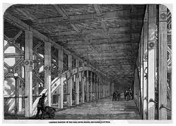 The arch ribs were erected in section by travelling crane; each arch was temporarily erected at the contractor’s works.[10] The first was placed on 10 July 1848, and the erection of the ironwork was quick.