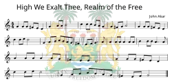 "High We Exalt Thee, Realm of the Free" is the national anthem of Sierra Leone. Written by Clifford Nelson Fyle and composed by John Akar in a nationwide competition,[1] it was adopted in 1961 when the country became independent from the United Kingdom, replacing "God Save The Queen". The Constitution of Sierra Leone, 1991, makes it the responsibility of every citizen of Sierra Leone to "respect its ideals and its institutions",[2] including the national anthem.