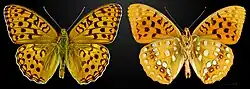 Fabriciana adippe, the high brown fritillary, is a large and brightly colored butterfly of the family Nymphalidae, native to Europe and across the Palearctic to Japan. It is known for being Great Britain's most threatened butterfly and is listed as a vulnerable species under the Wildlife and Countryside Act 1981.[2] Like other fritillaries it is dependent on warm climates with violet-rich flora.