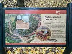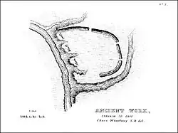 The Highbank Park Works (also known as the Orange Township Works) is a complex of earthworks and a potential archaeological site located within Highbanks Metro Park in Central Ohio in the United States. The park is in southernmost Delaware County on the east bank of the Olentangy River. The site is a semi-elliptical embankment, consisting of four sections, each 3 feet (0.91 m) high, and bordered by a shallow ditch. Two ravines and a 100-foot-high shale bluff surround the earthworks. It is thought to have been constructed sometime between 800 and 1300 CE by members of the Cole culture.[2] The earthworks have seen little disturbance since the first white settlement of the region; agriculture has never been practiced on their vicinity, and no significant excavation has ever been conducted at the site. One small excavation and field survey, conducted in 1951, yielded a few pieces of pottery and flakes of flint from a small midden.[3] Another excavation was conducted in 2011 that focused mainly on site usage and constructing a timeline for the mounds.[4]