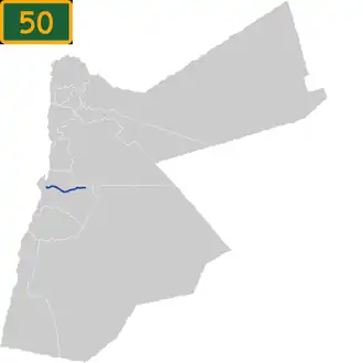 Highway 50 also known as Karak Highway is an East-West Highway in Jordan. It starts from Highway 15 and ends at Highway 65. The highway is the main access route to the city of Karak. The highway is a 4-lane divided route east of Karak.