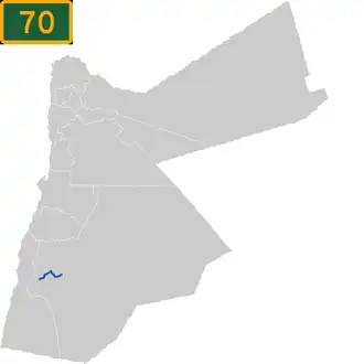Highway 70 is an East-West Highway in southern Jordan. It connects the Desert Highway, Highway 15, to the King's Highway, Highway 35. Highway 70 crosses through the path of rubble of the Khatt Shebib, an ancient pre-Roman wall, the longest linear ruin in Jordan.[1]