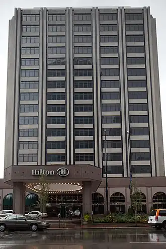 The Hilton Indianapolis Hotel & Suites is a hotel in Indianapolis, Indiana. The structure was completed as an office building in 1971 and converted to a hotel in 2000. It has 18 floors with a total of 332 rooms.[2] The Hilton was formerly the tallest hotel in the city; the JW Marriott Indianapolis surpassed it when it was completed in 2011.