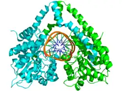 - ^ a b c Pingoud, Alfred; Jeltsch, Albert (15 September 2001). "Structure and function of type II restriction endonucleases". Nucleic Acids Research. 29 (18): 3705–3727. doi:10.1093/nar/29.18.3705. PMC 55916. PMID 11557805.