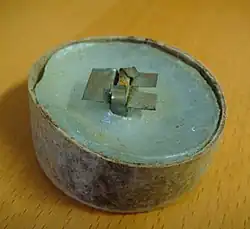 The Hindenburg light or Hindenburglicht was a source of tallow lighting used in the trenches of the First World War, named after the Commander-in-Chief of the German army in World War I, Paul von Hindenburg. It was a flat bowl approximately 5–8 cm (2–3 in) in diameter and 1–1.5 cm (0.4–0.6 in) deep, resembling the cover of Mason jar lid (Schraubglasdeckel) and made from pasteboard. This flat bowl was filled with a wax-like fat (tallow). A short wick (Docht) in the center was lit and burned for some hours. A later model of the Hindenburglicht was a "tin can (Dosenlicht) lamp." Here, a wax-filled tin can have two wicks in a holder. If both wicks are lit, a common, broad flame (zungenfoermige Flamme) results.