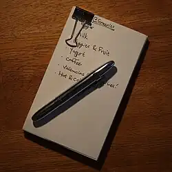 The Hipster PDA is a paper-based personal organizer, popularized by Merlin Mann in 2004.[1] Originally a tongue-in-cheek reaction to the increasing expense and complexity of personal digital assistants (PDA), the Hipster PDA (said to stand for "Parietal Disgorgement Aid" and often abbreviated to "hPDA") comprises a sheaf of index cards held together with a binder clip. Following widespread coverage in the media[2][3] and blogs, the hPDA became a popular personal management tool, particularly with followers of David Allen's Getting Things Done methodology.[4][5]