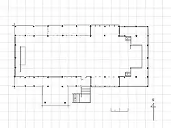 Shamusho backside. Wooden railings on what was formerly a balcony still visible -