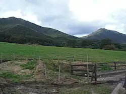 Hiruzen (蒜山; ひるぜん) is the name of an area located in the North of Maniwa City in the north of Okayama Prefecture, Japan. Hiruzen was formed of 3 small towns: Chuka, Yatsuka, and Kawakami, which together were known as the town of Hiruzen, which was merged with several other towns to become current Maniwa City in 2005. Its main feature is the Hiruzen Sanza (蒜山三座), a mountain located on the border of Okayama and Tottori prefectures on the main island of Honshu in Japan. The Hiruzen Sanza consists of three peaks of similar elevation, the highest being Mt. Kamihiruzen (Hiruzen (上蒜山)) at 1,202 m (3,944 ft).[1] The Hiruzen Highlands, (also known as the Hiruzen Plateau) has an elevation of 500 metres (0.31 mi) to 600 metres (0.37 mi).[2] Hiruzen is an important part of the Daisen-Oki National Park.[3][4]
