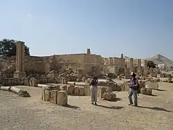 Hisham's Palace (Arabic: قصر هشام Qaṣr Hishām), also known as Khirbat al-Mafjar (Arabic: خربة المفجر), is an important early Islamic archaeological site in the city of Jericho, in the West Bank. Built by the Umayyad dynasty in the first half of the 8th century, it is one of the so-called Umayyad desert castles. It is located 3 kilometres (1.9 mi) north of Jericho's city center,[1] in an area governed by the Palestinian National Authority (PNA). The palace was used until the 11th century, and it may have been destroyed by an earthquake in 1033.